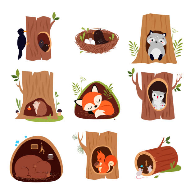 Cute Animals Sitting In Burrows And Tree Hollows Vector Set Stock Illustration Download Image Now Istock